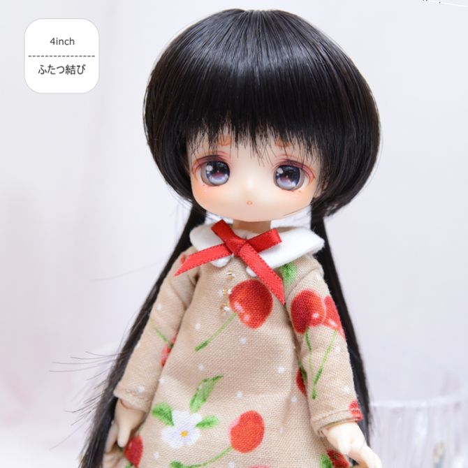 【4インチ】 耐熱 ドール用ウィッグ ふたつむすび チャコールブラック