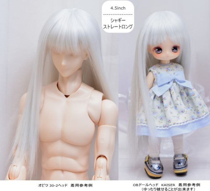 【4.5インチ】 耐熱 ドール用ウィッグ シャギーストレートロング /ホワイトシルバー