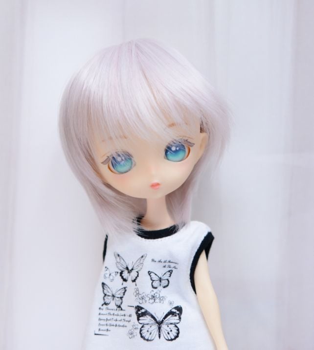 難あり・長期保管品 【7インチ】 ドール用ウィッグ 襟足長めショート ペールライラックシルバー