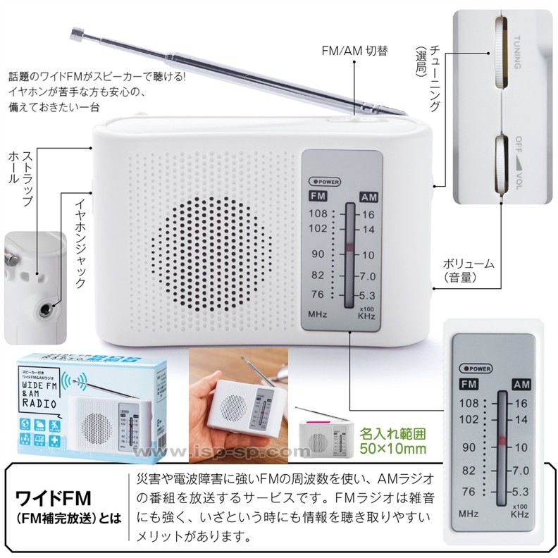 スピーカー付きワイドFM&AMラジオ