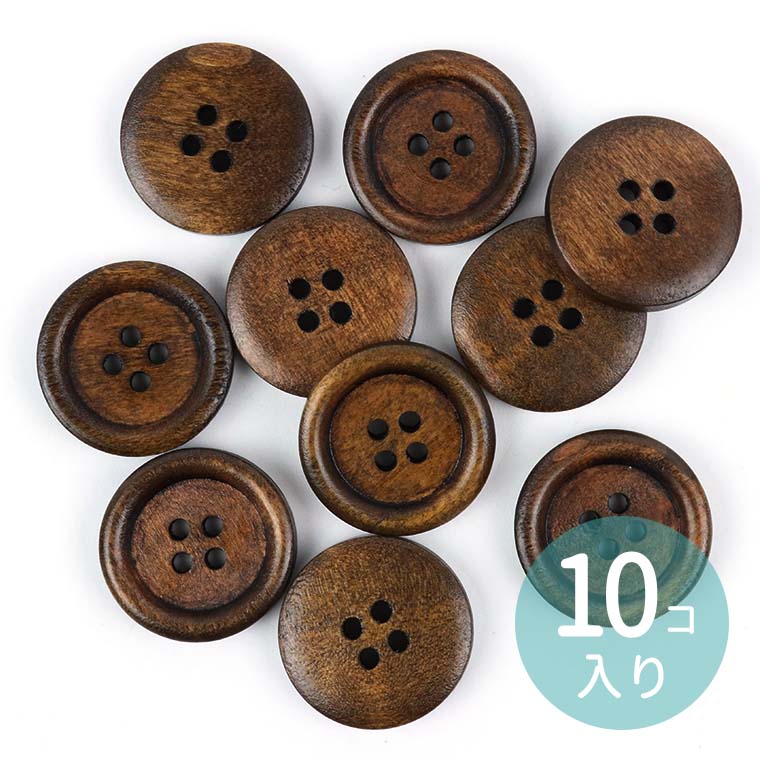 20mm 10個入 ウッドボタン 4つ穴 ダークブラウン / 木製 裁縫 洋服 button ソーイング ハンドメイド コーヒー ...