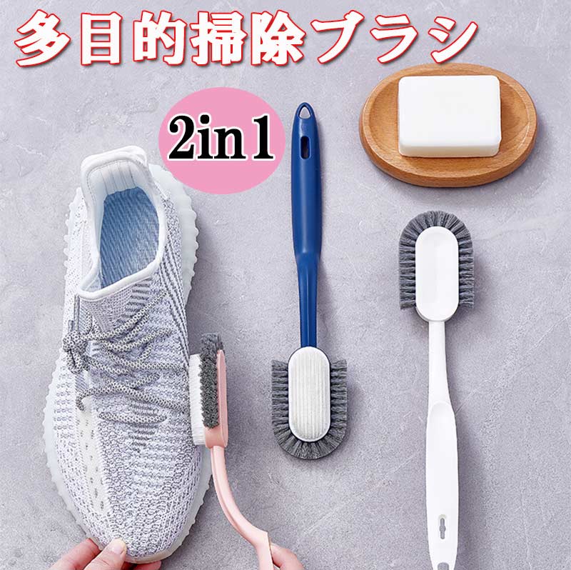 靴洗い ブラシ 2in1 シューズブラシ 上履き スニーカー ブラシ 柄付き たわし お風呂掃除 床溝 洗面台 多目的 靴用ブラシ...