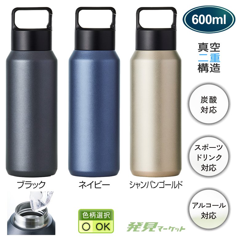真空ステンレス炭酸ボトル(600ml)(色選択)