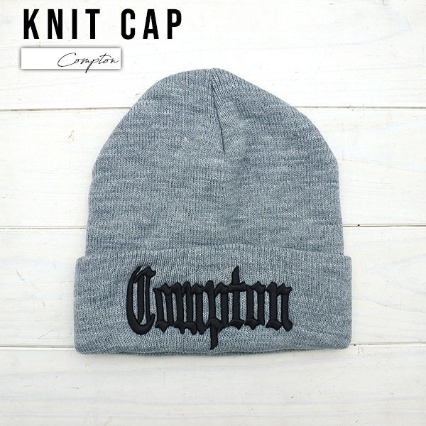 COMPTON ニットキャップ ニット帽 グレー ビーニーキャップ 帽子 コンプトン カリフォルニア 折り返し KNIT CAP ...