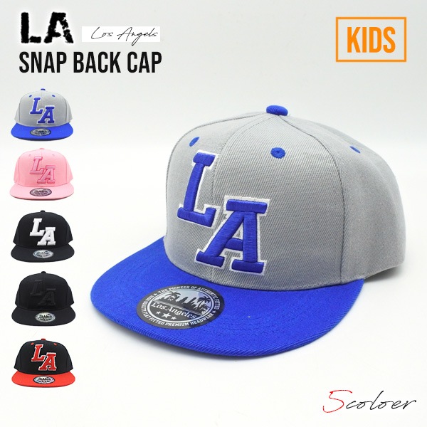 キッズ キャップ #37 全4色 LA ロゴ 子ども サイズ ブルー グレー ブラック ネイビー レッド 子供用帽子 スナップバッ...