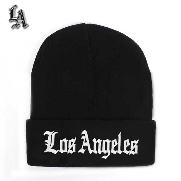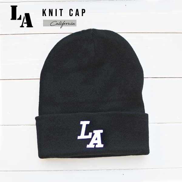 Los Angeles ニットキャップ LA ニット帽 ブラック ビーニーキャップ 帽子 ロサンゼルス カリフォルニア 刺繍 折り...