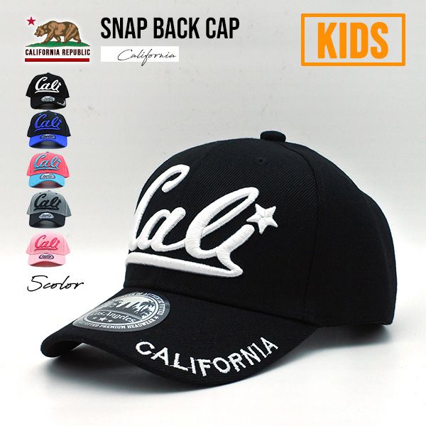 キッズ キャップ #08 カリフォルニア スナップバック CALI 筆記体 子どもサイズ 全9色 子供用帽子 帽子 CALIFOR...