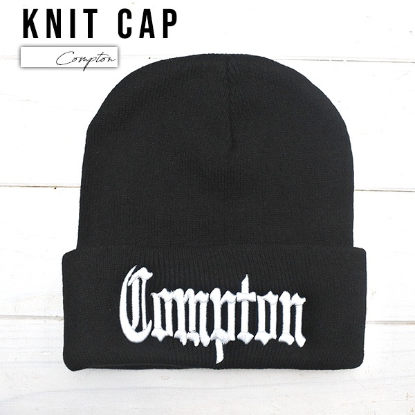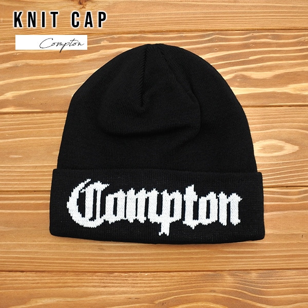 COMPTON ニットキャップ ニット帽 ブラック ビーニーキャップ 帽子 コンプトン カリフォルニア 折り返し KNIT CAP...