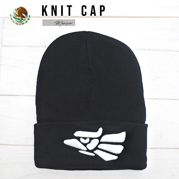 Mexico ニットキャップ ニット帽 ブラック ホワイト ビーニーキャップ 帽子 メキシコ メキシカン MEXICAN 刺繍 折...