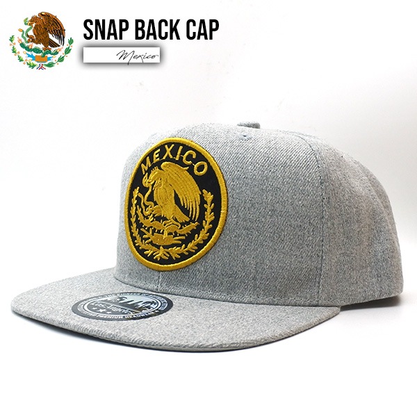キャップ メンズ レディース #3 メキシコ ロゴ ワッペン 刺繍 ライトグレー ゴールド 国旗 帽子 大人サイズ スナップバック...