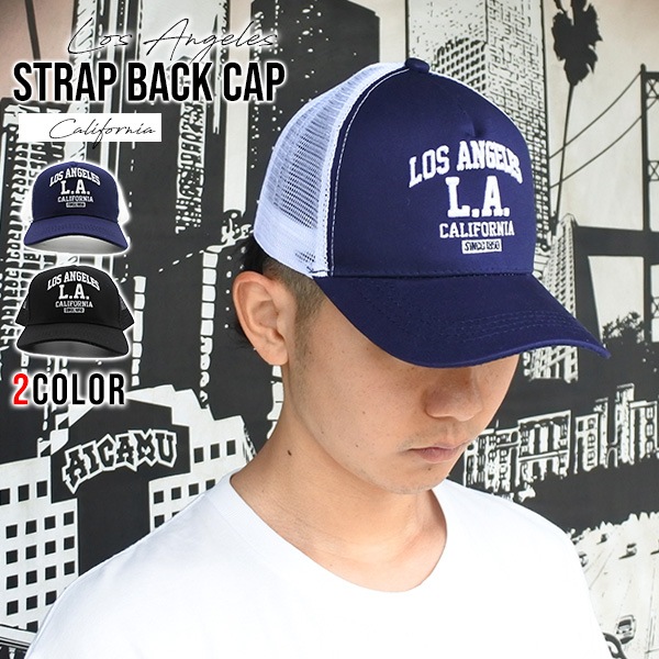 キャップ メンズ レディース #54 全2色 ネイビー ブラック メッシュ Los Angeles 刺繍 LA ロサンゼルス ロゴ...