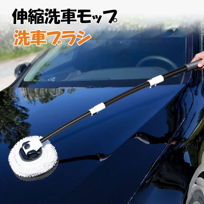 洗車モップ ボディ用 洗車用品 伸縮柄付き アルミニウム 3段階調整 柔らかい 回転 自動車 屋根大型用洗車 クリーニングブラシ ...
