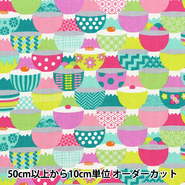 【数量5から】 生地 『シーチング ごはん ピンク×ブルー SK-6800-2A』