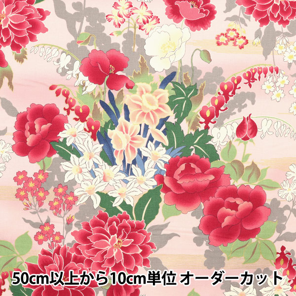 【数量5から】 生地 『シーチング 百華繚蘭 ピンク HR3400-11B』 Quilt Gate キルトゲイト