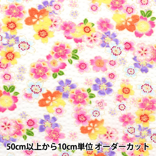 【現品限り】 【数量5から】 生地 『防蚊加工リップル サクラ ホワイト B-38100-1A』