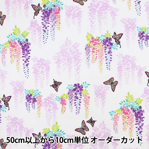【数量5から】 生地 『シーチング ラメ入り 蝶と藤 壱 白 SO-4300-1A』