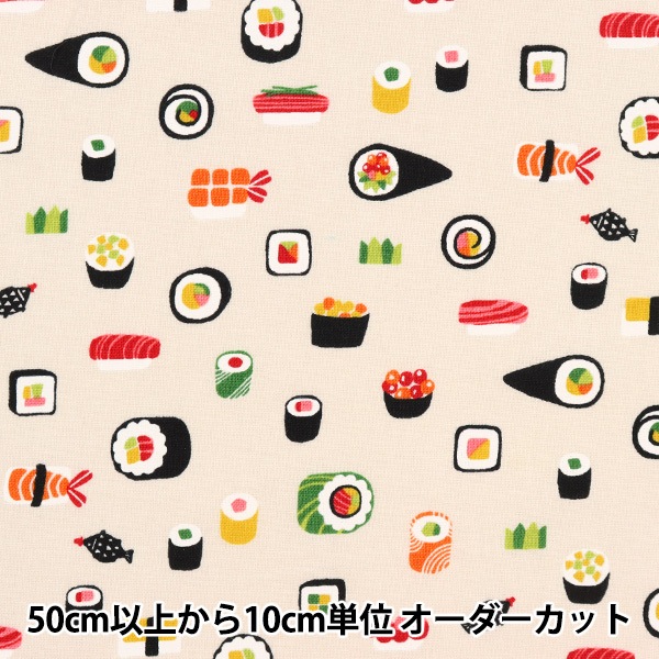 【数量5から】 生地 『シーチング ミニ寿司 白 SK-6800-1A』
