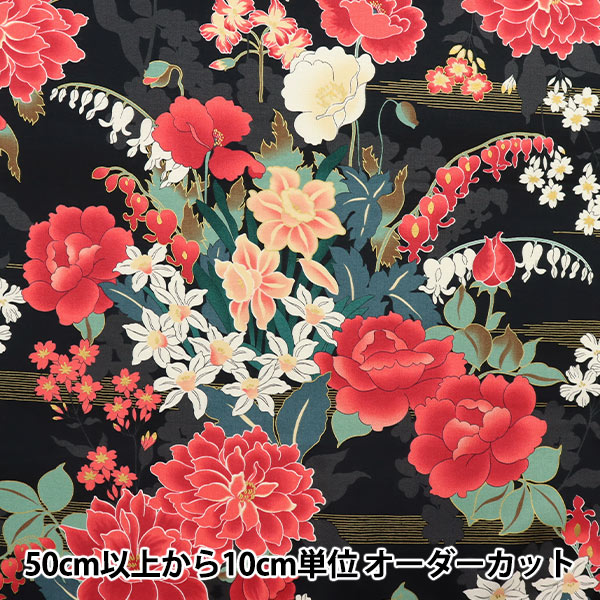 【数量5から】 生地 『シーチング 百華繚蘭 黒 HR3400-11E』 Quilt Gate キルトゲイト
