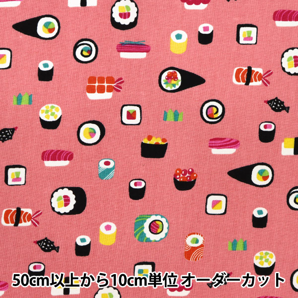 【数量5から】 生地 『シーチング ミニ寿司 ピンク SK-6800-1C』