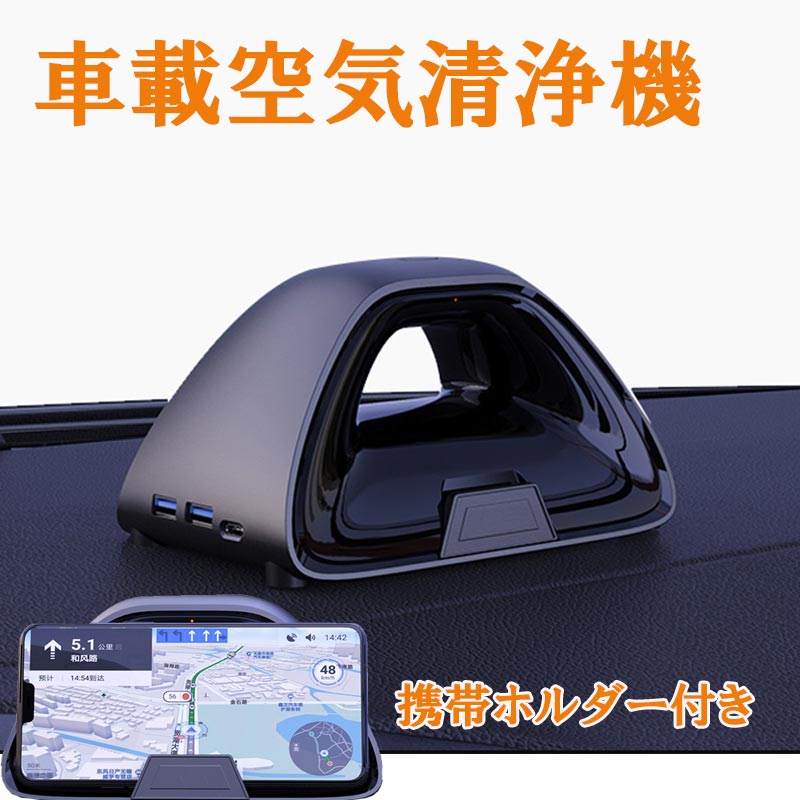 ポータブル車用空気清浄機 ミニ HEPA 車用空気清浄機 喫煙者に適した 携帯電話ホルダー付き アレルギー 煙に適した 小型空気清...