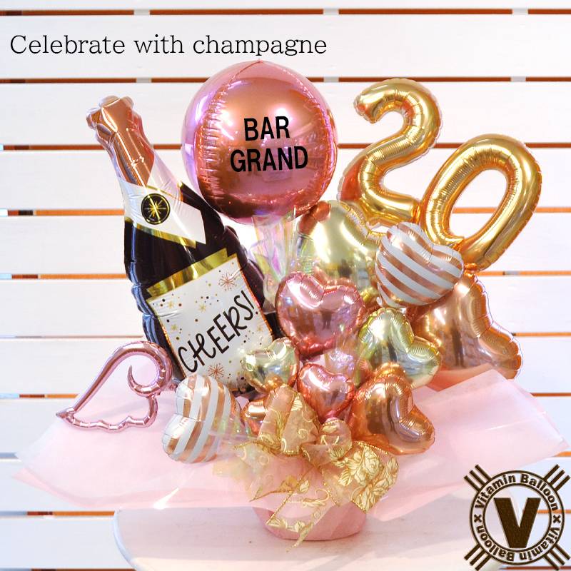 送料無料 当店オリジナルバルーンアレンジ ピンクゴールドシャンパンネオ