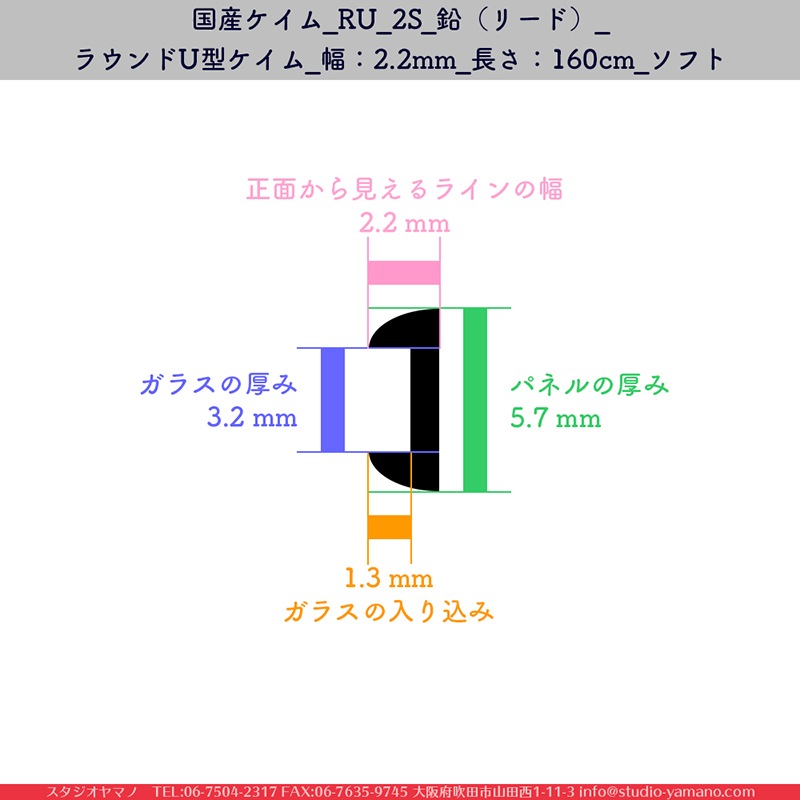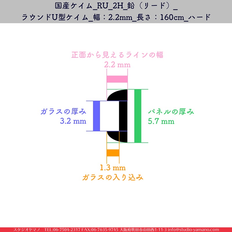 旧マツムラ_RU_2H_鉛(リード)_ラウンドU型ケイム_幅:2.2mm_長さ:160cm_ハード_1本