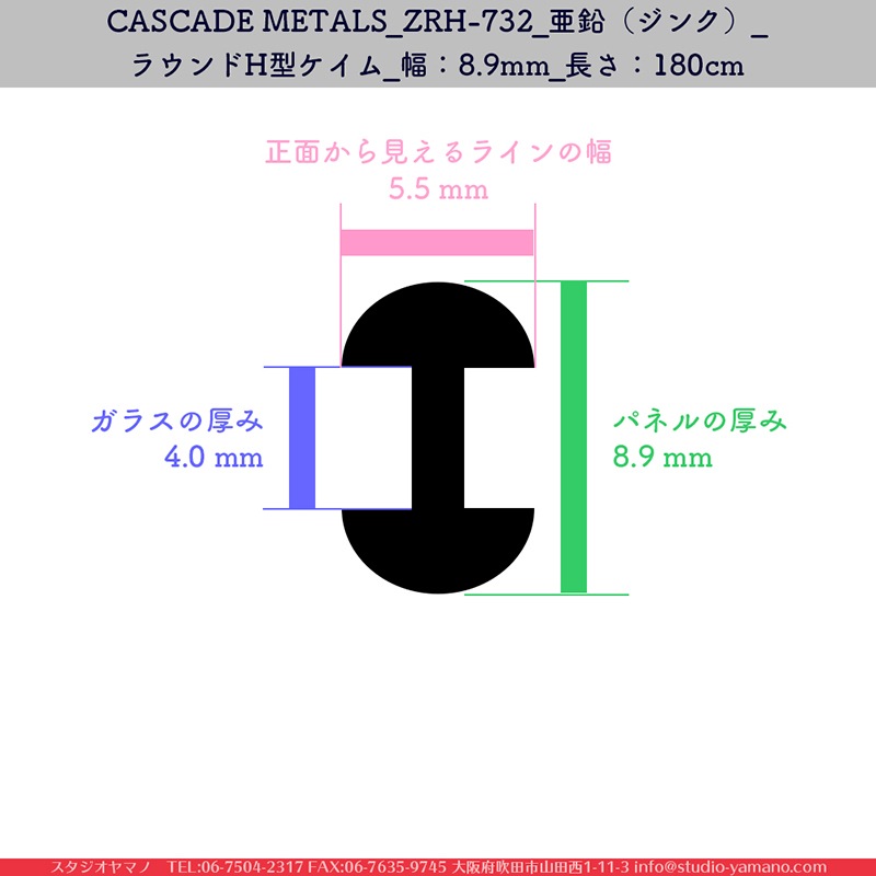 CASCADE METALS_ZRH-732_亜鉛(ジンク)_ラウンドH型ケイム_幅:5.5mm_長さ:180cm_1本