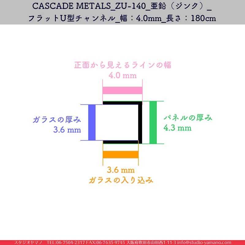CASCADE METALS_ZU-140_亜鉛(ジンク)_フラットU型チャンネル_幅:4mm_長さ:180cm_1本