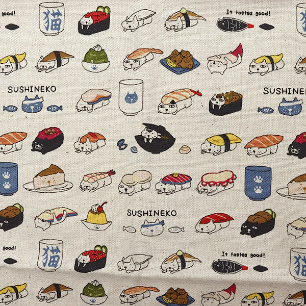 生地 『綿麻キャンバス カットクロス 寿司ネコ 約110cm×50cm C-KTS6601-A』 COTTON KOBAYASHI...