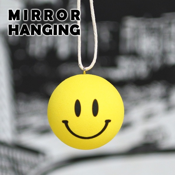 ルームミラーハンギング スマイル イエロー ハンギング smile ニコちゃん カーアクセサリー ルームミラー アクセサリー 飾り...