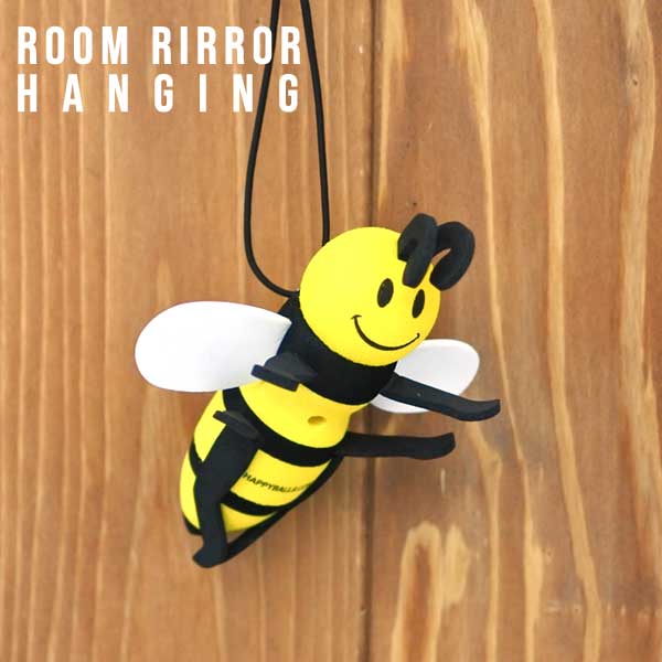 ルームミラーハンギング ハチさん ハチ BEE 蜂 カーアクセサリー ルームミラー アクセサリー 飾り 装飾 吊り下げ ミラー ハ...