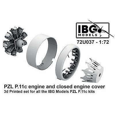 72U037 PZL P.11c 戦闘機用 エンジン&カウリング 3Dプリント