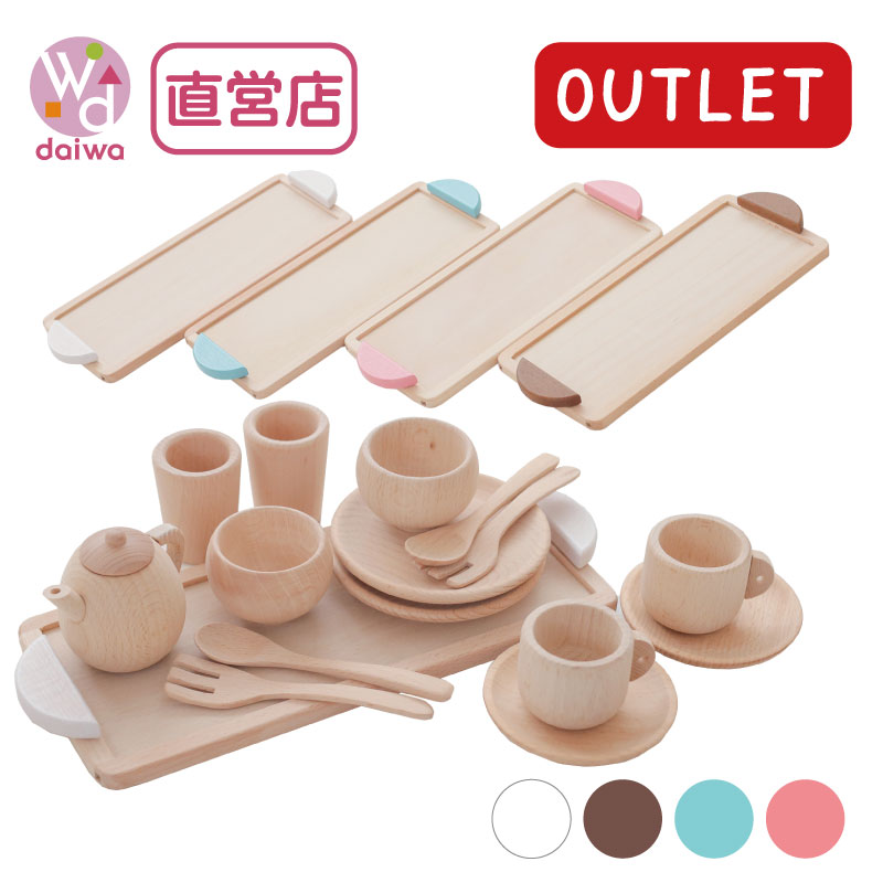 OUTLETカラーが選べる!ミニ食器セット 《専用BOX*包装不可》 (木のおもちゃ ままごと)