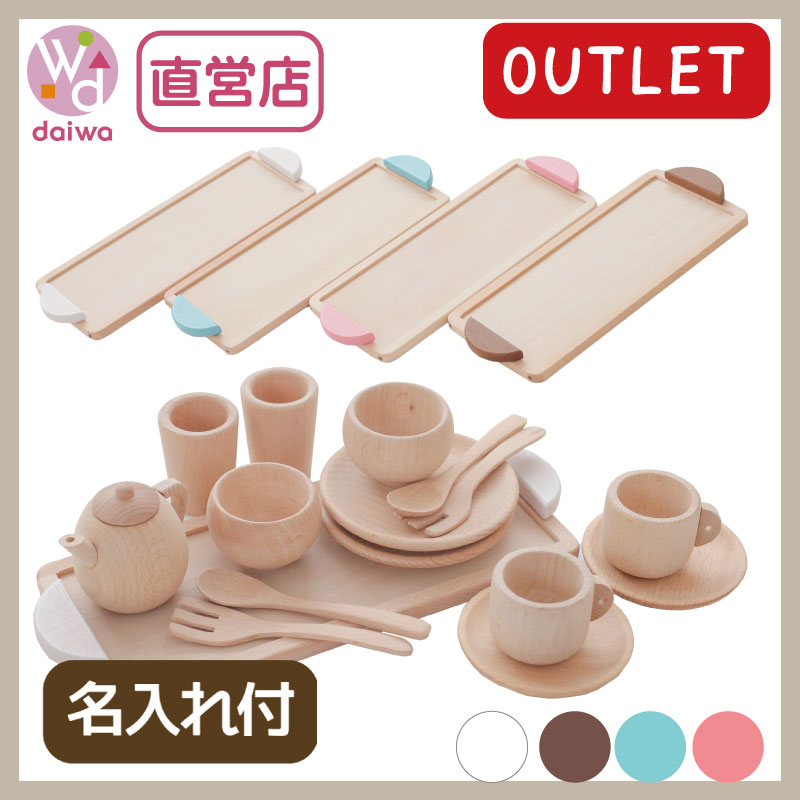 OUTLET名入れ付き・カラーが選べる!ミニ食器セット 《専用BOX*包装不可》 (木のおもちゃ ままごと)