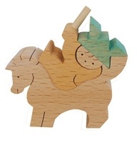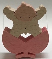 組み木の五月人形 軍配を持つ金太郎とウサギ