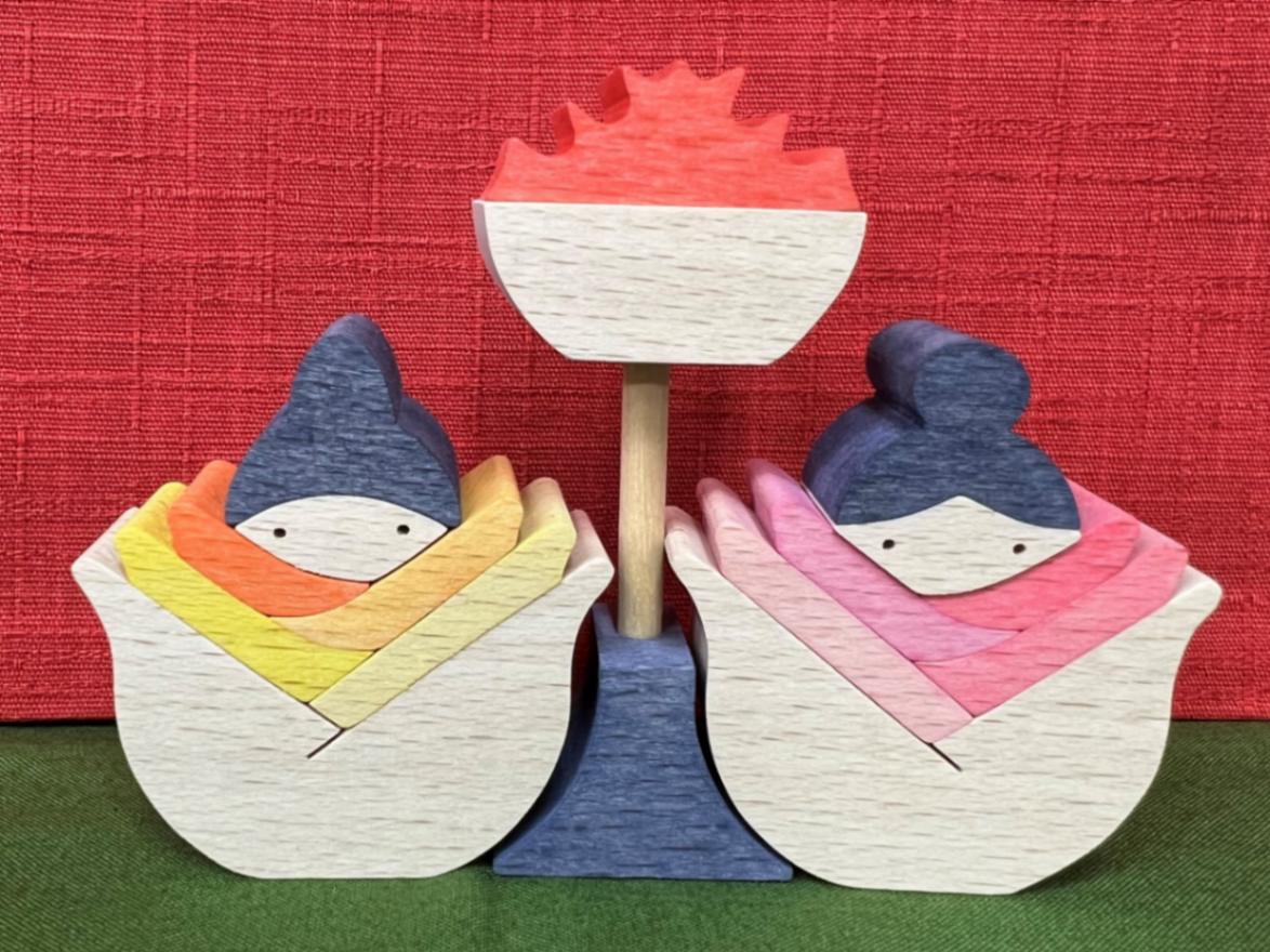 組み木の節句人形 KH234 つぼみびな・ぼんぼり付き