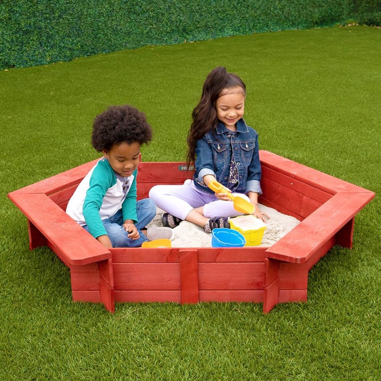 ヘキサゴン サンドボックス 砂場 蓋付き カバー シート 六角形 木製 129x149x22cm 家庭用 大型遊具 すなば 杉