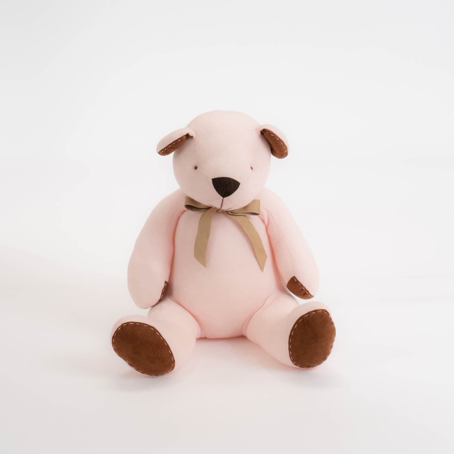 名入れ刺しゅうで、世界にひとつのカシミヤ・テディベア。上品な淡いピンク色のローズ・パパベア【30cm】