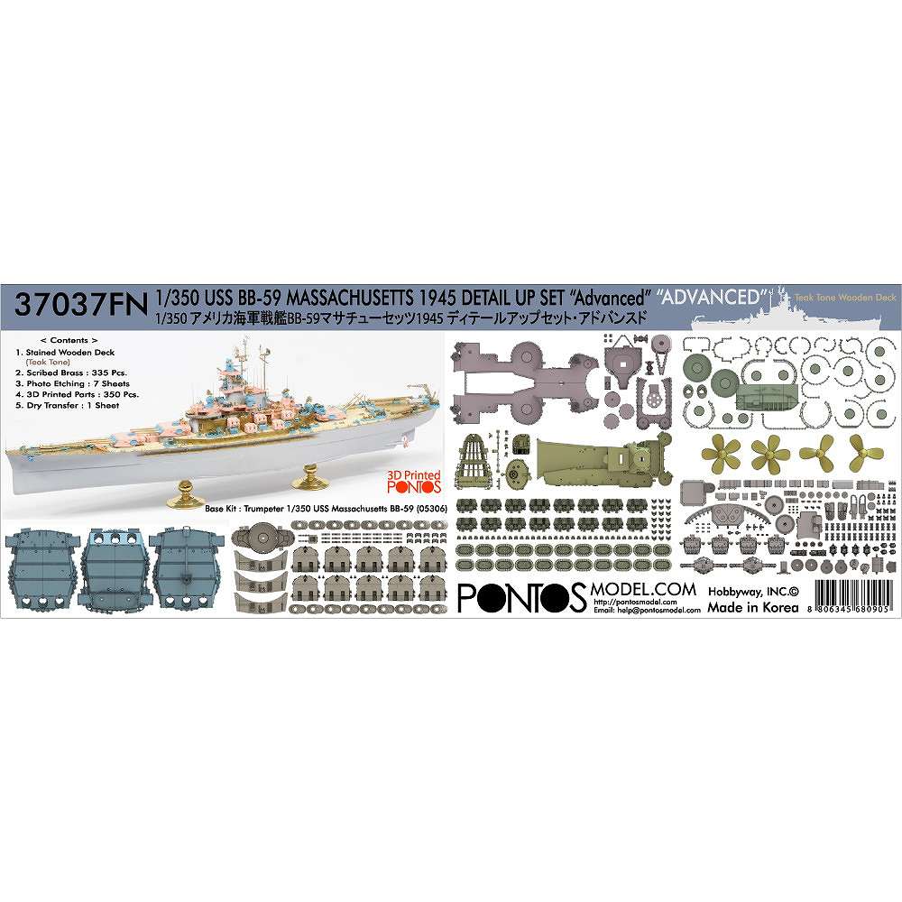 37037FB アメリカ海軍 戦艦 BB-59 マサチューセッツ 1945 ディテールアップセット・アドバンスド ブルーデッキ