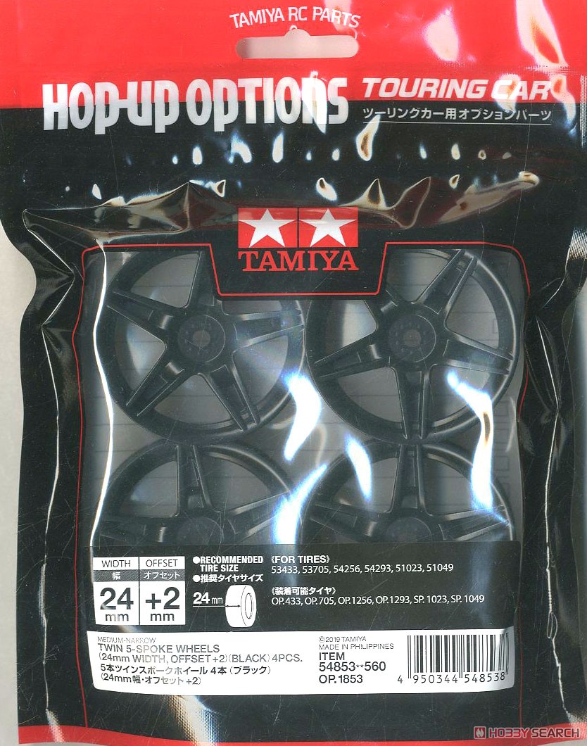 未使用品 タミヤ 54853 OP.1853 5本ツインスポークホイール4本 ブラック 24mm幅 オフセット+2【送料無料】【メ...