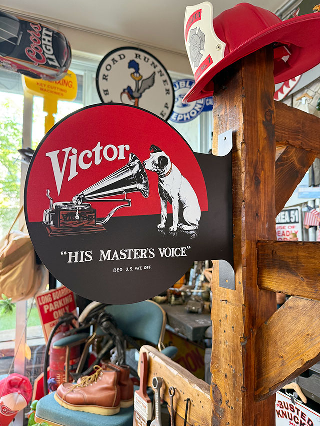 HMV ニッパードック サイド看板 両面プリント フランジメタルサイン ビクター犬 HIS MASTER\'S VOICE