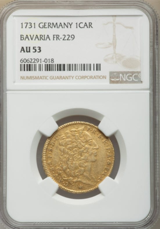 【動画あり】ドイツ 1731年 カール7世 ゴールドカロリン金貨 NGC-AU53