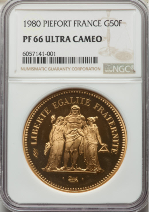 【動画あり】フランス1980年リパブリックプルーフ金貨ピエフォー50フランNGC社-PF66UCAM