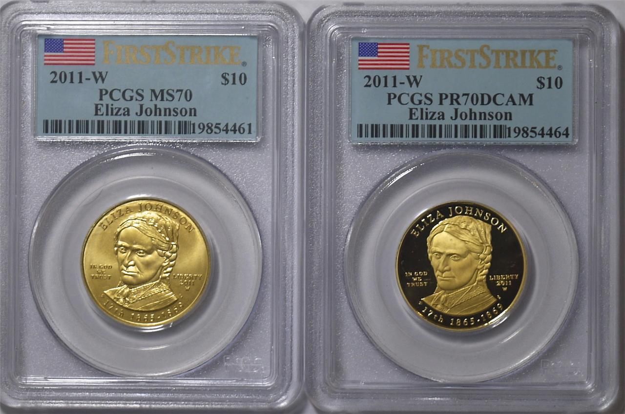 【動画あり】2枚セット 2011-W 10ドル金貨 イライザジョンソン $10 PCGS MS-70 アンド PR70-DCAM ...