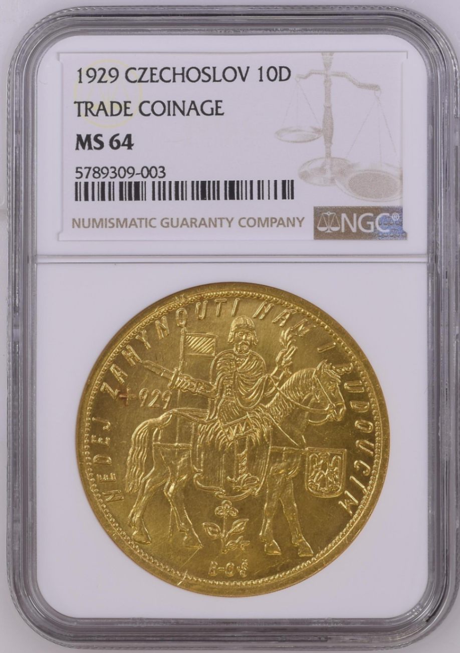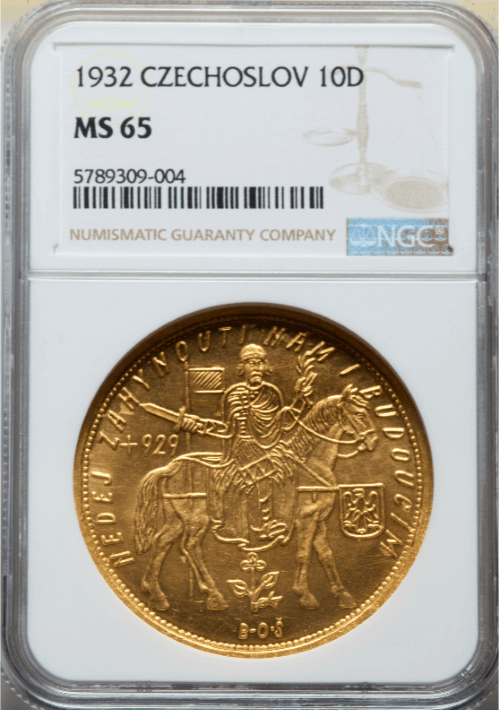 アンティークコイン チェコスロバキア 1929年 ヴァーツラフ1世 10ダカット NGC-MS64
