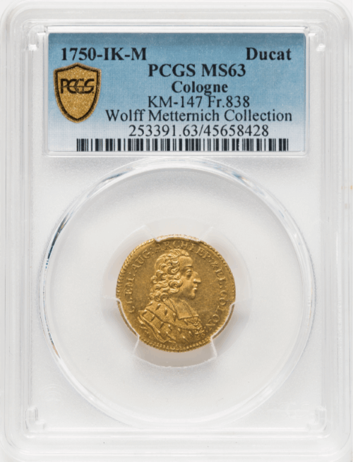 【動画あり】アンティークコイン ドイツ 1750-IK-M年 ケルン 自由都市 1ダカット金貨 PCGS-MS63