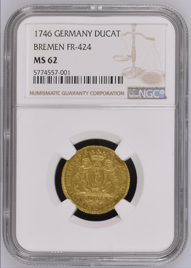 【動画あり】ドイツ ブレーメン 1746年 1ダカット金貨 NGC-MS62