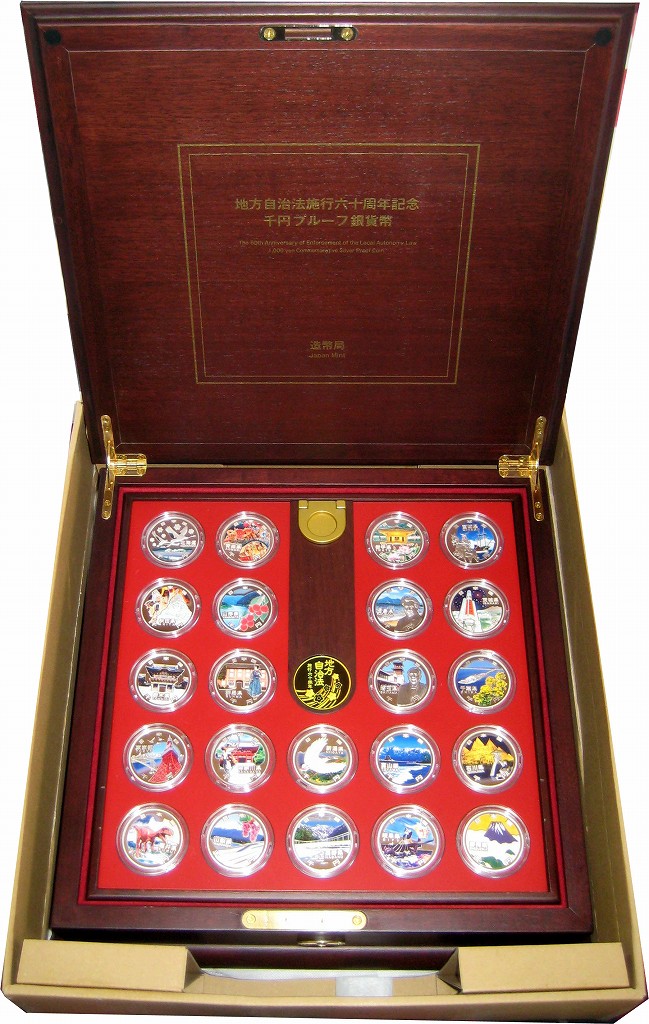特選【訳あり特価】【造幣局製・木製収納ケース入り】 地方自治法施行60周年記念 千円銀貨 Aセット《47都道府県フルコンプリート》