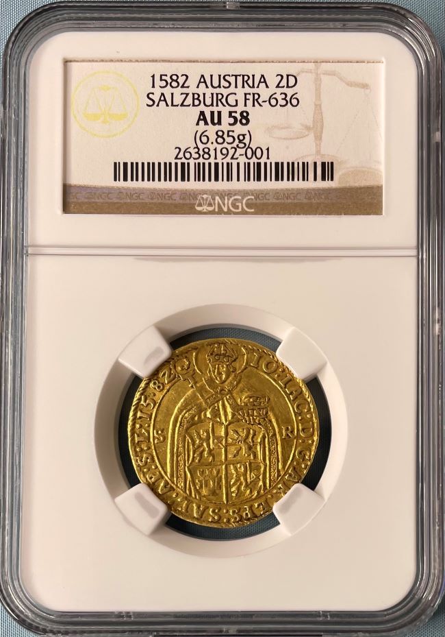 オーストリア 1582年 ザルツブルク 2ダカット金貨 NGC AU58