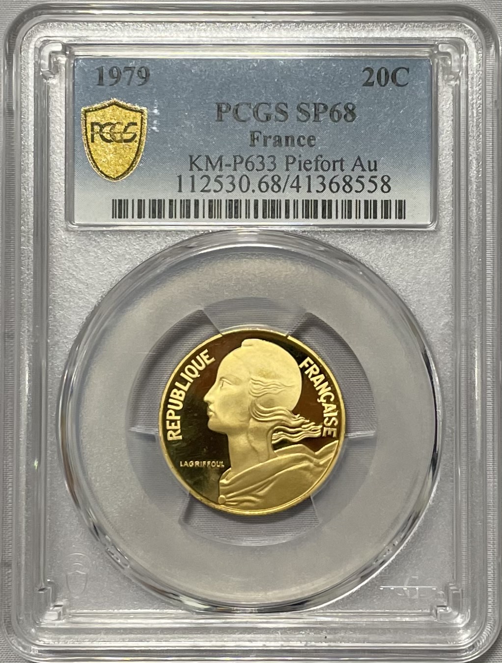 アンティークコイン フランス 1979年 20サンチームピエフォー金貨 PCGS-SP68